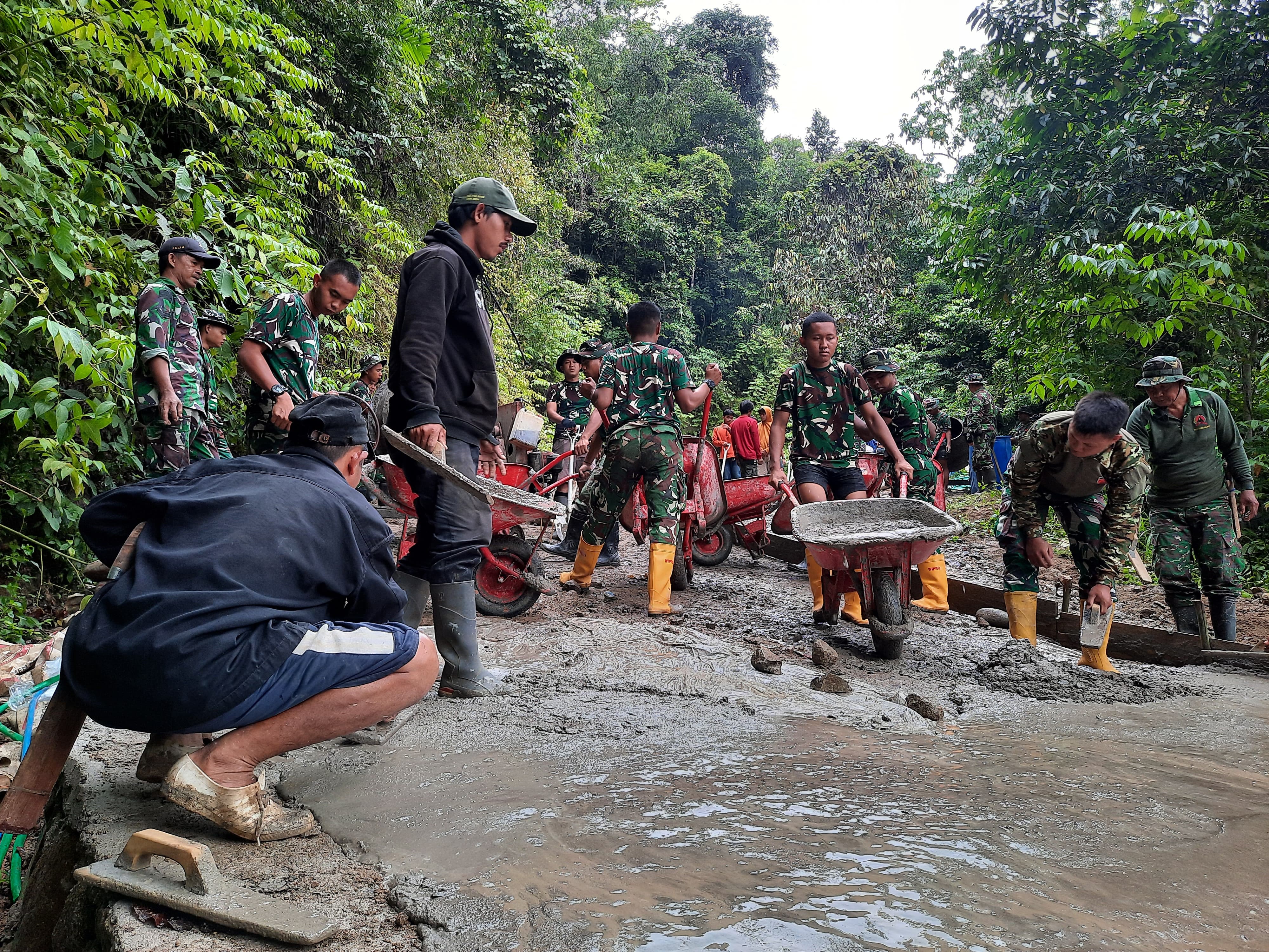 “Memasuki hari ke-15 setelah pembukaan, progres rabat beton sudah mencapai 58 persen. Walaupun dalam suasana puasa, semangat anggota satgas dan masyarakat tetap tinggi,” ujarnya di lokasi kegiatan.